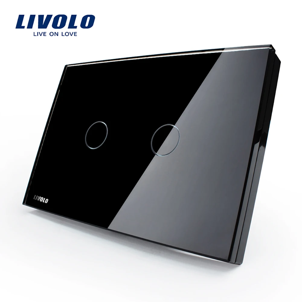 Best Quality LIVOLO US standard Wall Touch Light Switch AC 110~250V Ivory White Glass Panel 2-gang 1way VL-C302-