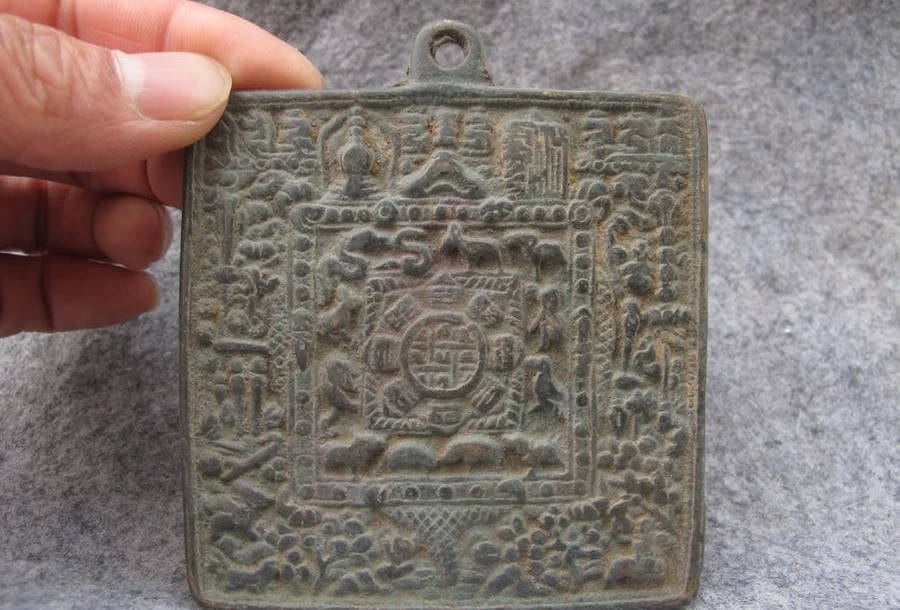 92MM Chinese Collect Bronze Twelve Zodiac Tibet Buddhism Wall hanging Pendant