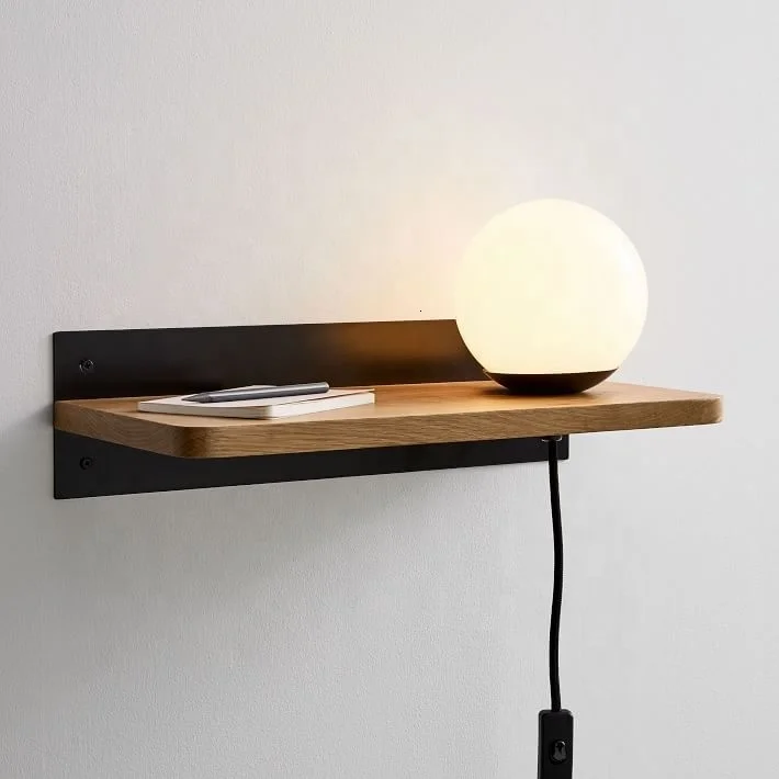 HOT Sale European Decoration Book Shelf Led Wall Light Antique Creative Indoor Lighting Iron Wood Shelf Wall